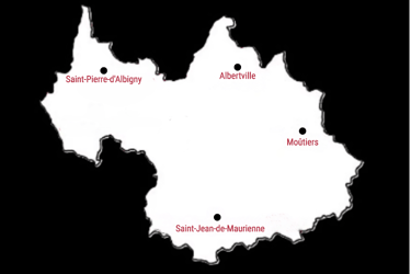 Aiton, Aiguebelle, Arbin, Argentine, Albertville, Brides-les- Bains, Cevins, Chamousset, Cléry, Cruet, Epierre, Esserts-Blay, Feissons-sur-Isère, Francin, Frontenex, Gilly-sur-Isère, Grand-Aigueblanche Grésy-sur-Isère, Valgelon-La-Rochette, La Bâthie, La Léchère, La Chapelle, Les Allues, Les Belleville, Saint-Martin-de-Belleville, Les Marches, Marthod, Montmélian, Myans, Moûtiers, Rognaix, Saint-Alban d'Hurtières, Saint-Georges d'Hurtières, Ste-Hélène-du-Lac, Saint-Paul-sur-Isère, Saint-Pierre-d'Albigny, , Tours-en-Savoie, Tournon, Ugine, Les Menuires, Courchevel, La Tania, Valmorel, Méribel.